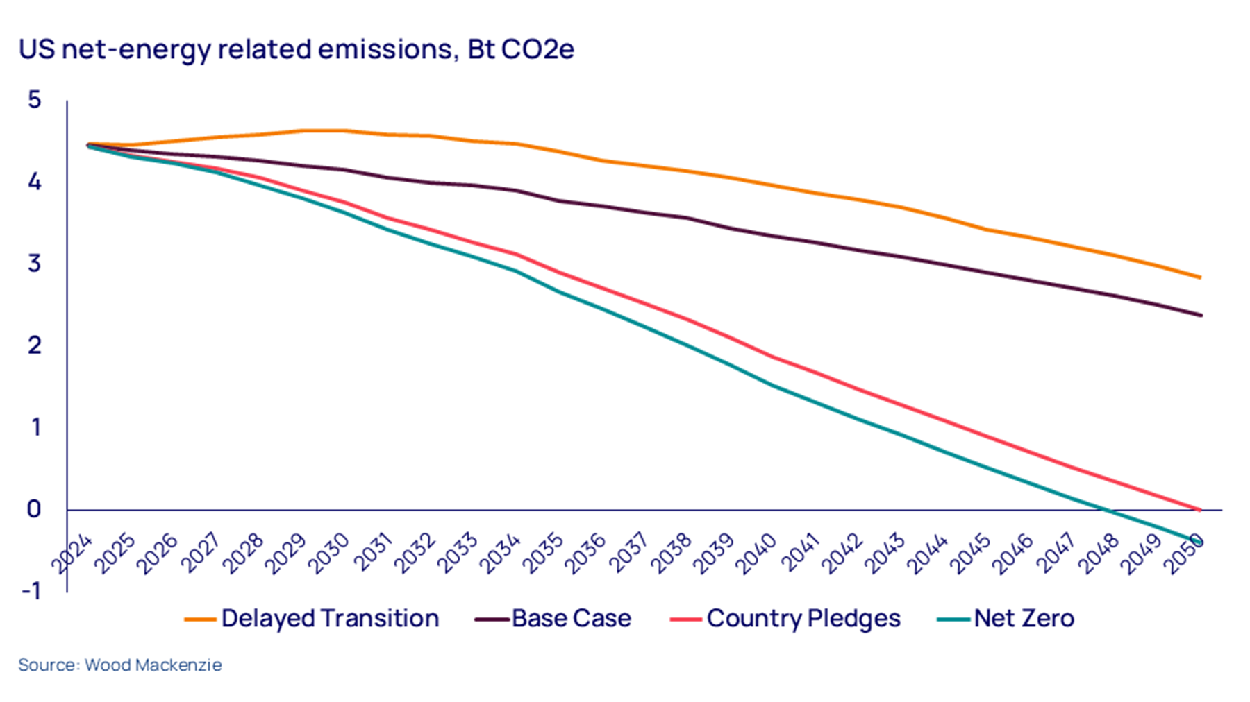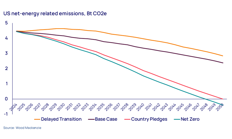The US will backtrack on net zero. Bipartisan support for measures in the Inflation Reduction Act (IRA) means that a full repeal is unlikely, but the expiration of tax cuts passed in President Trump’s first term will force Congress to re-examine incentives for low-carbon energy.