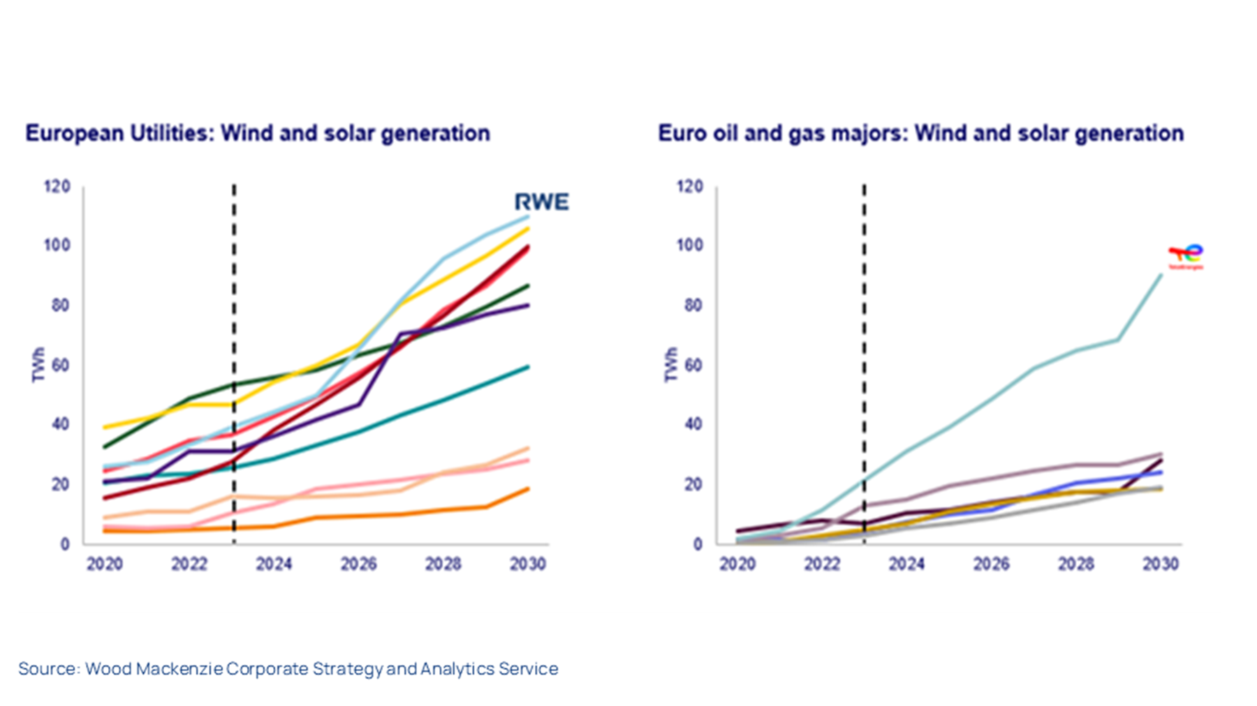 Companies included in our Corporate Strategy and Analytics Service - Power and Renewables include: BP, EDF, EDP, EnBW, Enel, Engie, Equinor, Iberdrola, Ørsted, Plenitude, Repsol, RWE, Shell, SSE, TotalEnergies, Vattenfall
