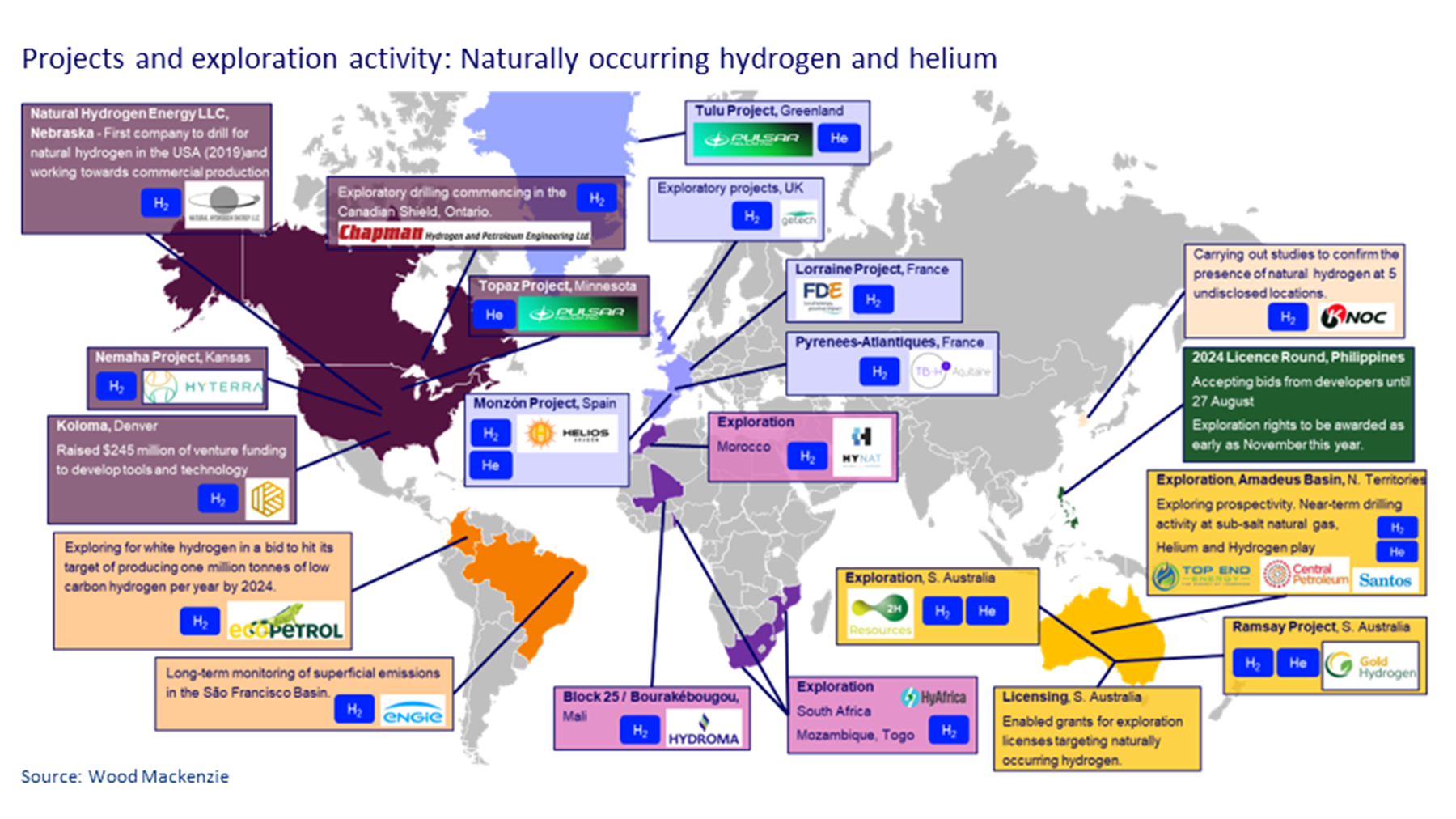 The industry is truly nascent. A handful of innovators, backed through private investment, are leading the way in trying to understand the prospective resource. To date, the only operational white hydrogen project is the Bourakébougou field in Mali, delivering electricity to a small village.