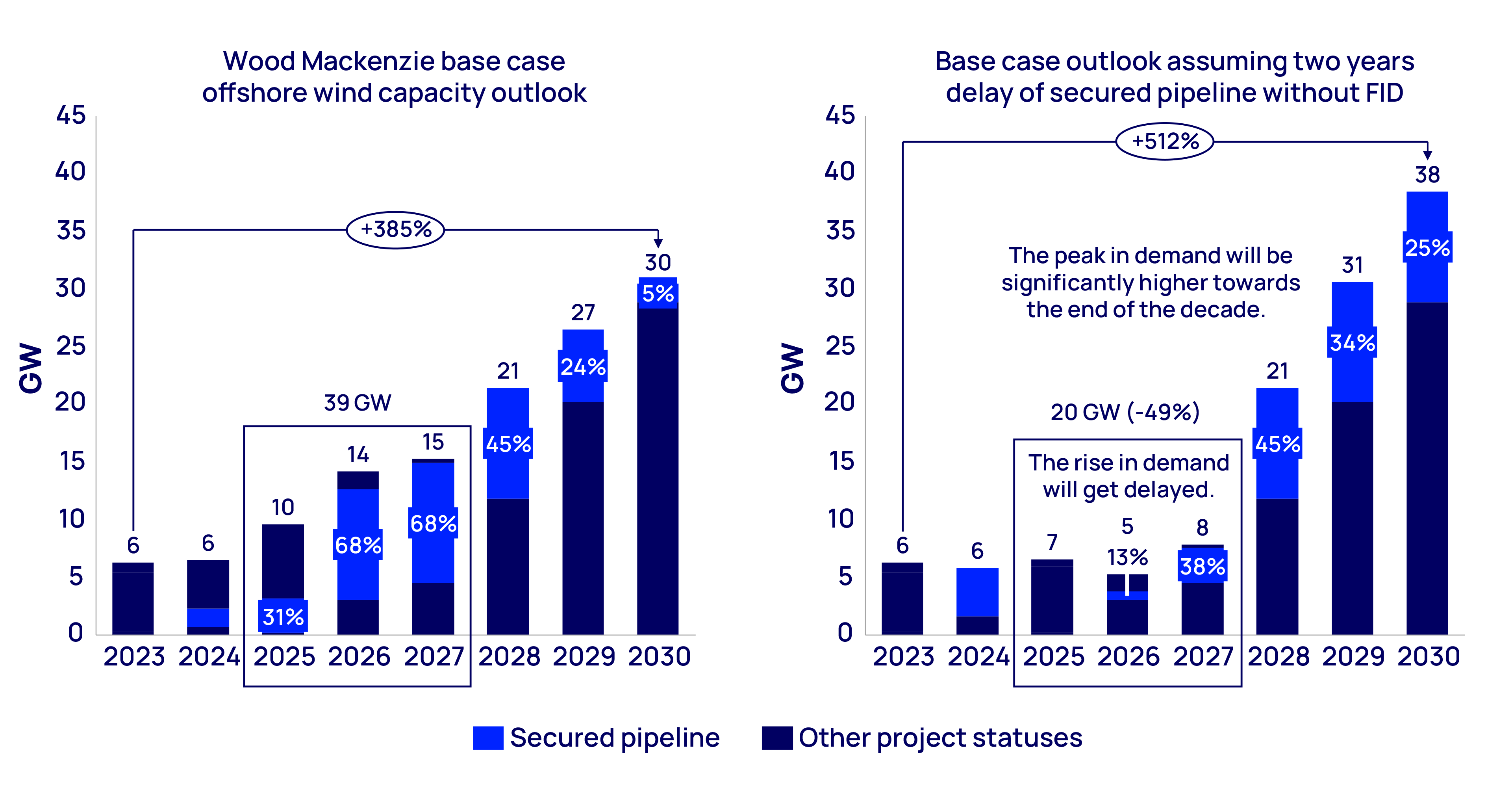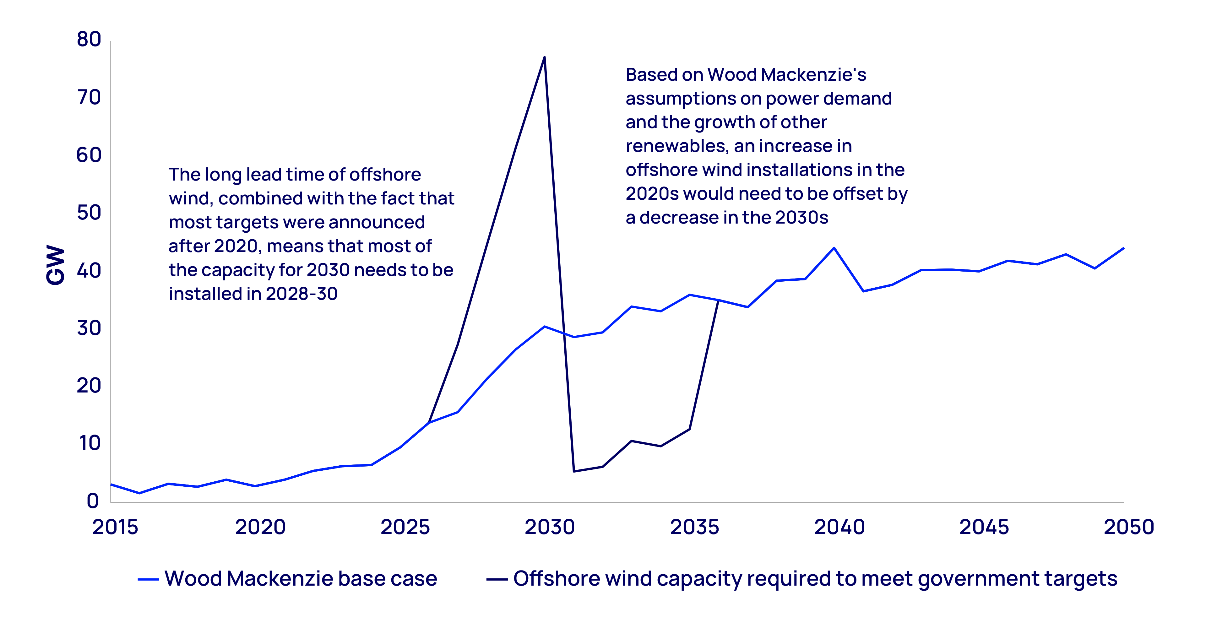 Figure 1: Difference between Wood Mackenzie’s offshore wind outlook and 2030 government targets