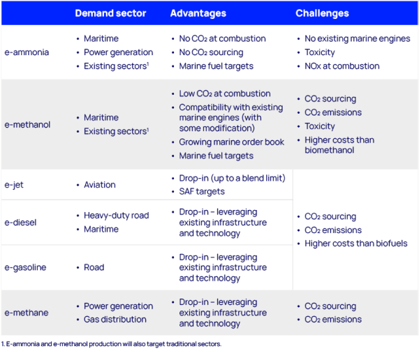 - Traders: e-fuels will create a commercial intersection between electrons and molecules across transport sectors that is new to the energy industry. Aviation, maritime and heavy-duty road transport use different incumbent fuels where competition has never existed. These sectors are now competing for the same biofuels and the same green hydrogen and COâ‚‚ underpinning e-fuels. Green hydrogen and COâ‚‚ will be pitted against biofuels to meet low-carbon demand in these sectors, with biogenic COâ‚‚ sought after to produce the most competitive RFNBO-compliant e-fuels. Such uncertainty and potential volatility are what traders seek.