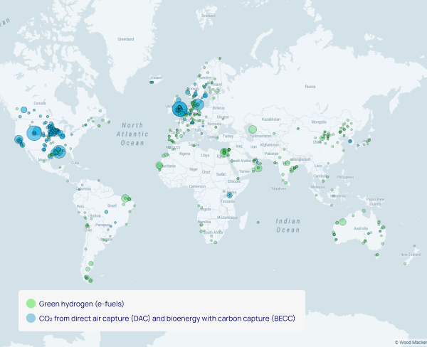 - Biomass power generators: globally, there is 73 GW of biomass generation capacity online today across more than 2,200 projects, highlighting just how fragmented the market is. Drax (2,580 MW) and Ferrybridge (2,098 MW) in the UK are the two largest, having converted from coal plant to biomass. Both are planning carbon capture developments where the CO2 could be sold directly to e-fuel producers. There is no shortage of coal generators globally that could follow suit, but biomass feedstock constraints will eventually surface, and these generators often require subsidy support.