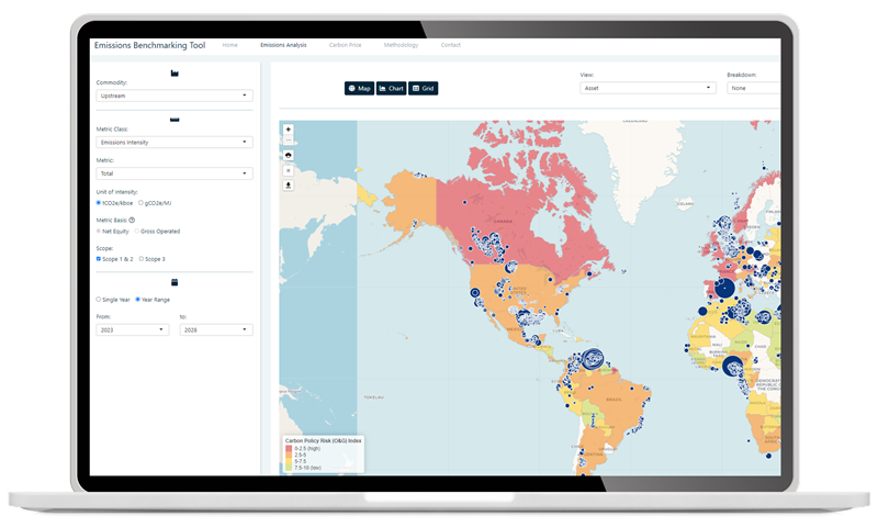 The Emissions Benchmarking Tool provides transparency at the asset and corporate level for Upstream, Downstream and Metals & Mining to enable a comprehensive assessment of emissions-related risks and opportunities.