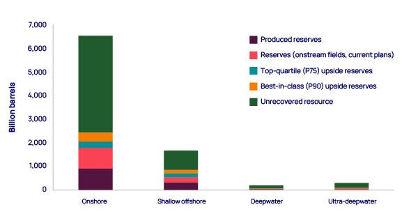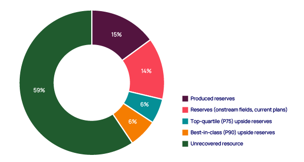 Recovery upside varies by basin and resource theme. This opportunity lies almost exclusively within onshore and shallow offshore fields, which account for 63% and 31% of the best-in-class upside, respectively. The industry must sharpen its focus here if it is to meet long-term demand.