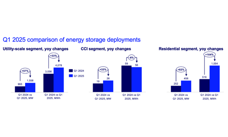 The U.S. energy storage market added more than 2 GW across all segments in Q1 2025, marking the highest Q1 on record. The utility-scale segment led the way with more than 1.5 GW of new capacity, representing a significant 57% increase compared to Q1 2024.