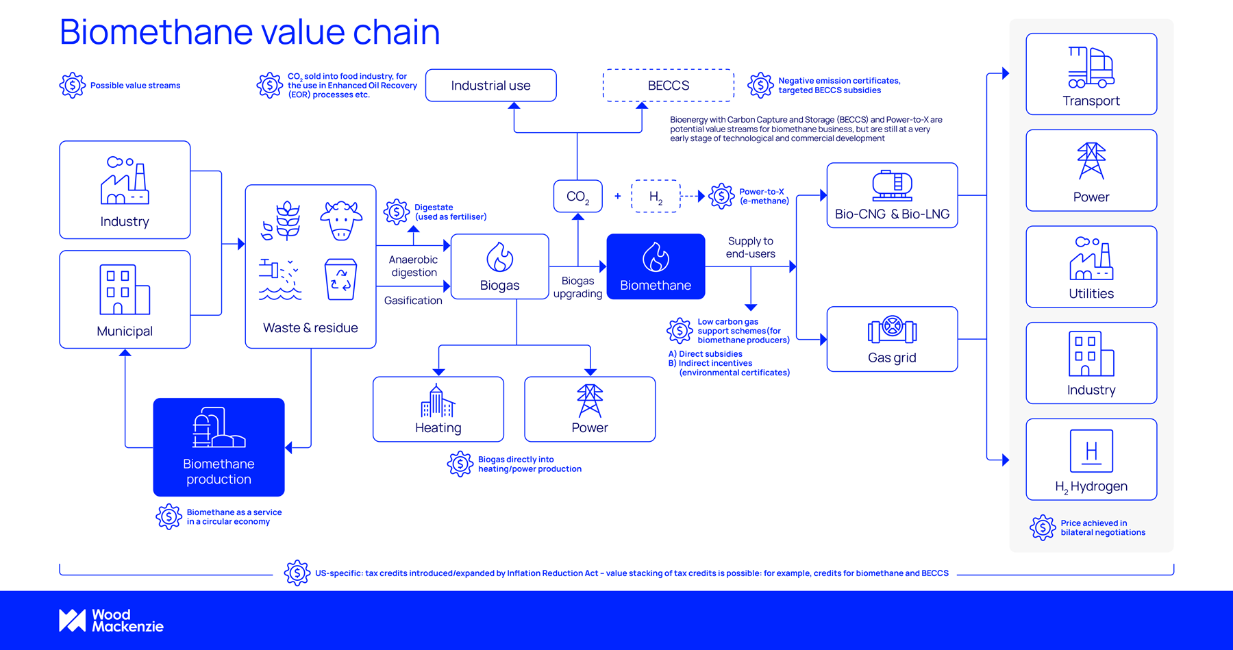 Wood Mackenzie helps customers understand key value streams of biomethane production