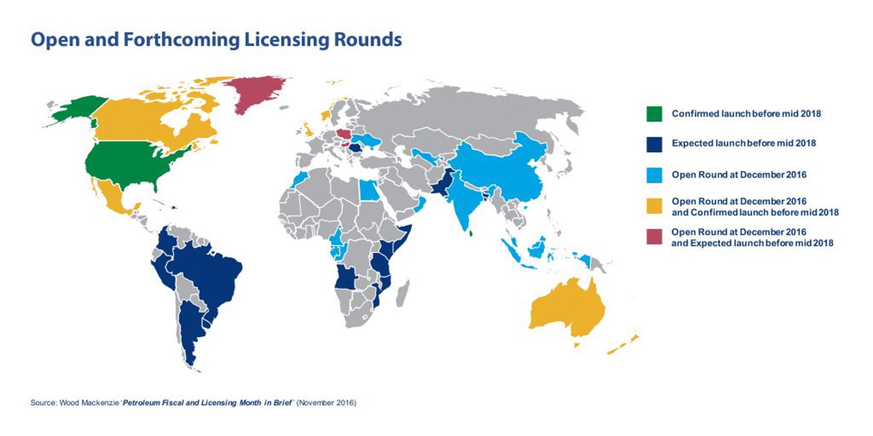 At the beginning of December 2016, opportunities in 30 licensing rounds are being considered by exploration companies. We know of at least 37 more that are planned to open within the next 18 months. It's becoming a crowded market.