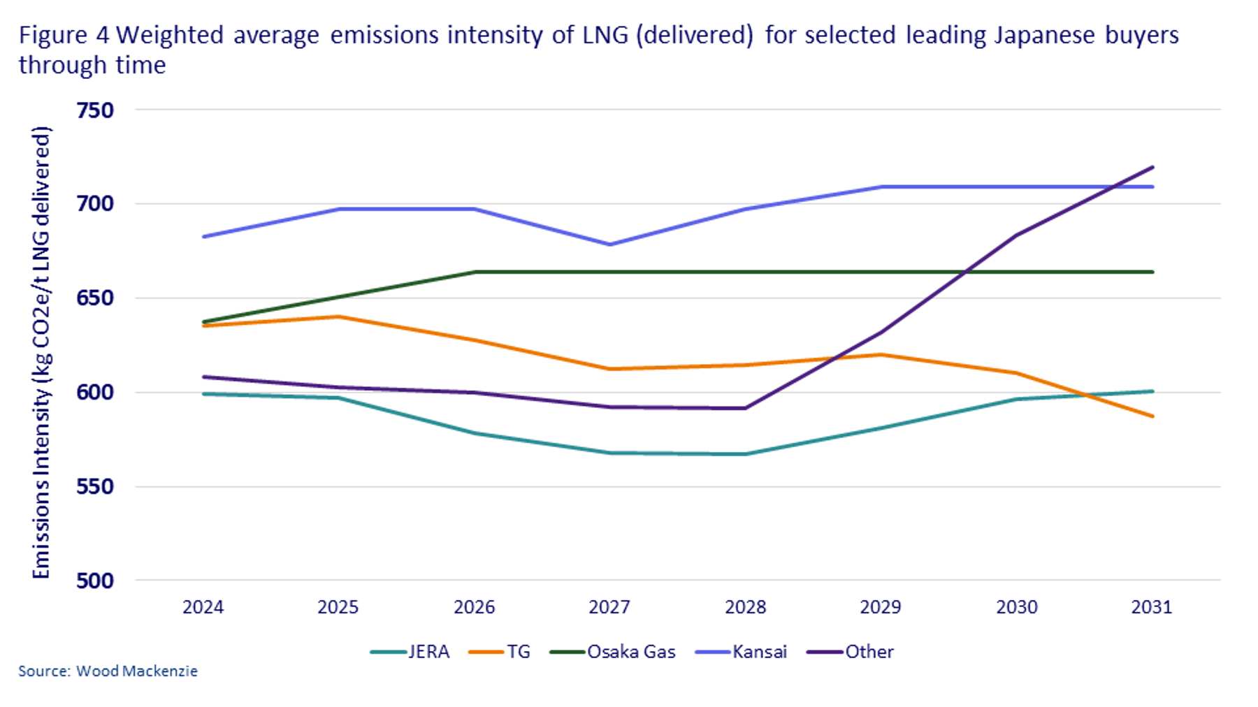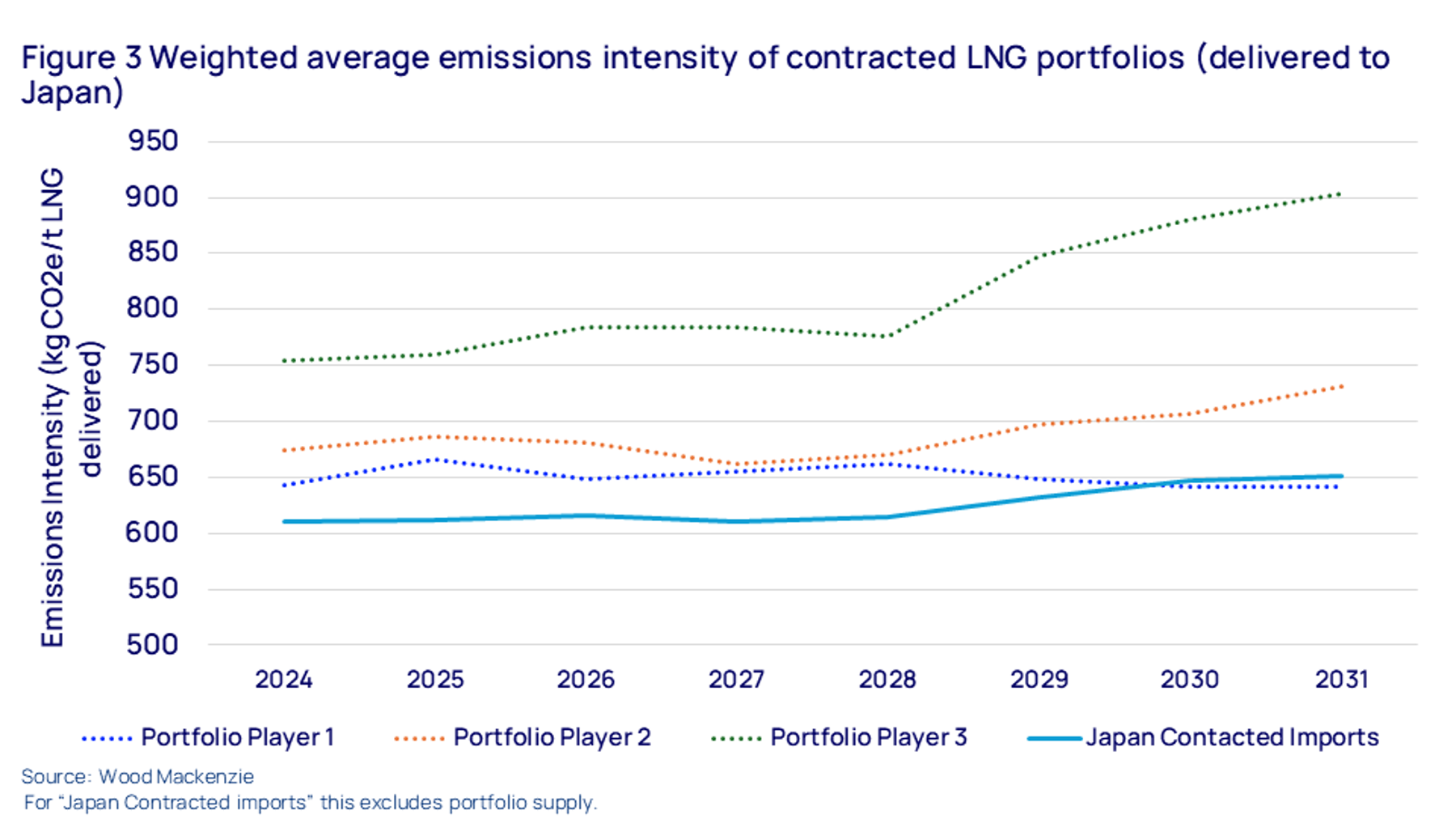 What are the implications for the overall emissions intensity of Japanese LNG?