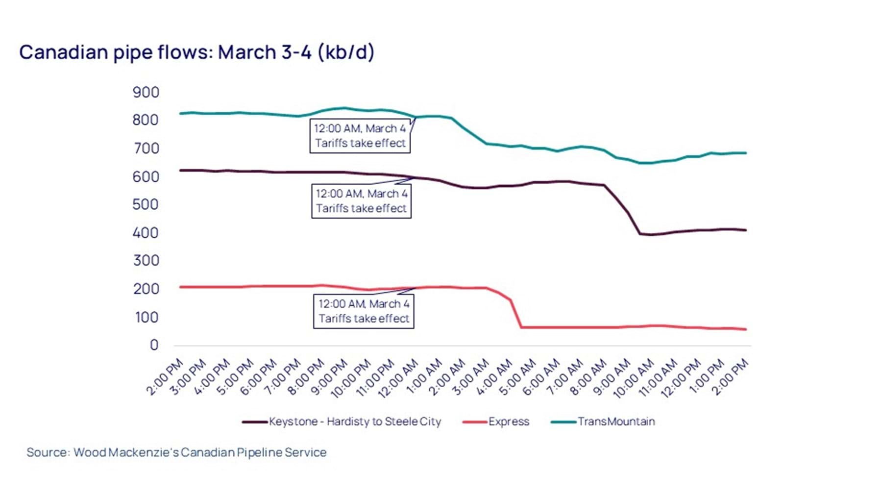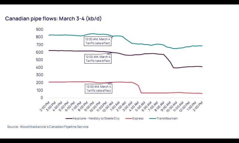 Reduced flow on several US-bound Canadian pipelines following introduction of tariffs