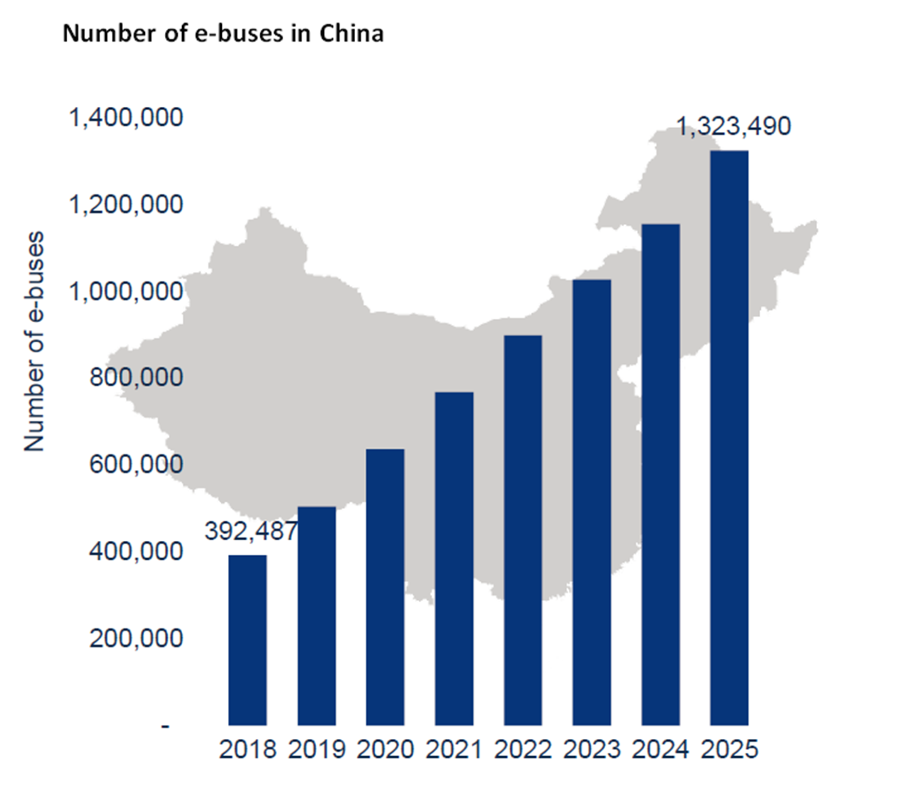 China dominates the heavy-duty electric vehicle (EV) segment, accounting for 98% of the global e-bus market through 2018. To support this high concentration of e-buses, a total of more than 50,000 e-bus charging points will be installed by the end of 2019. This figure is set to more than double by the end of 2025.