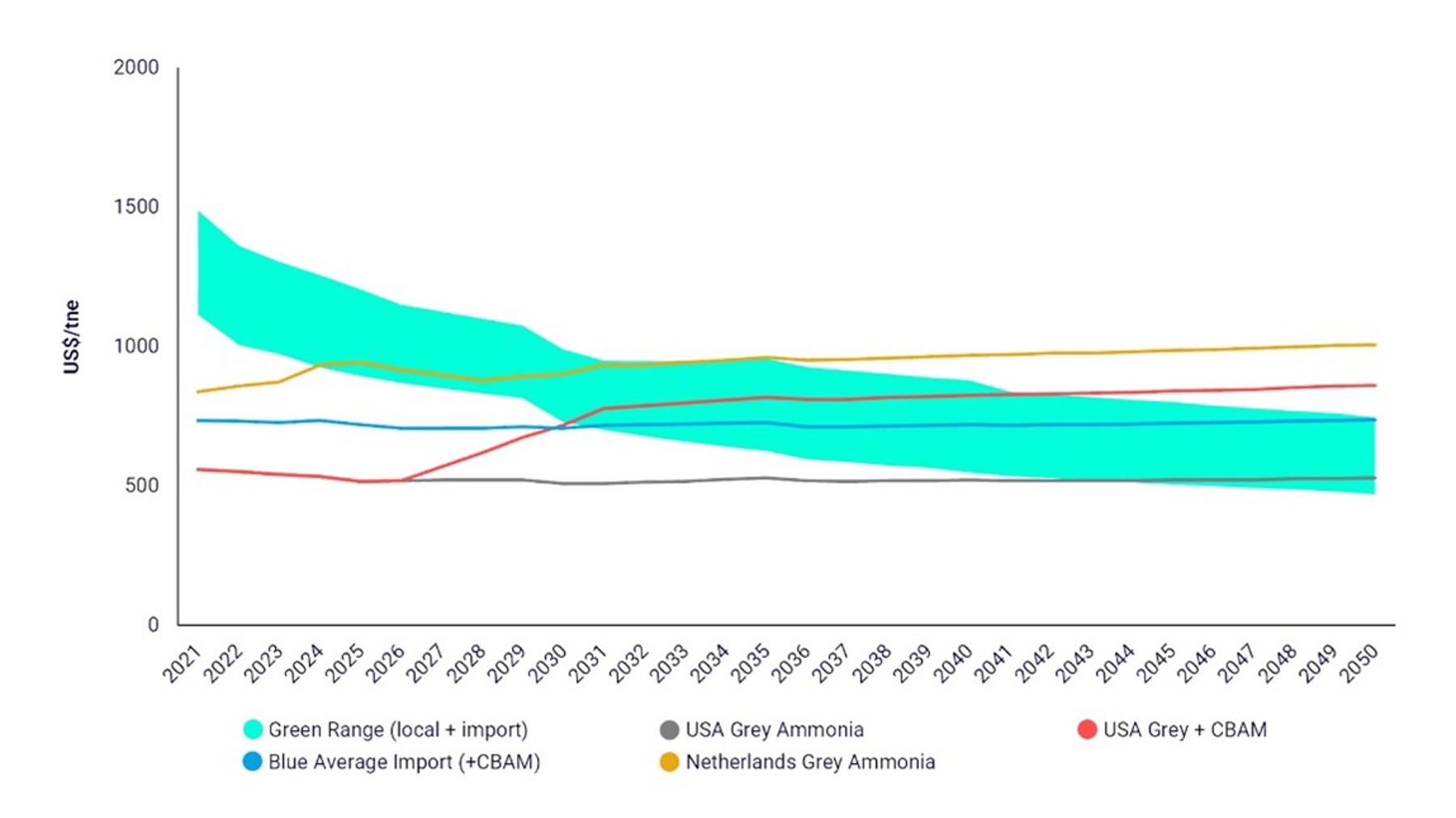 “As this transition occurs, European policymakers will want to avoid imported, carbon-intensive ammonia undermining European production, particularly because the fertiliser sector has important implications for food security,” said Moreira. “It will be a challenge. Our cost estimates show that low-cost grey ammonia sources (like the US) remain competitive with European low-carbon production for the next decade, becoming only marginally more expensive (much due to carbon taxation) out to 2040.”
