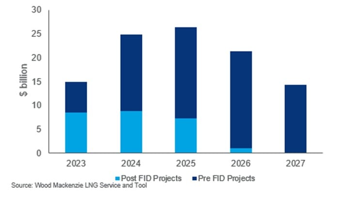 “The combination of low fees and increasing costs mean we estimate unlevered internal rates of return (IRRs) as low as 5-6% for some projects. Based on these returns, some projects are finding it challenging to secure finance, particularly via equity raises,” said Harrison. “Projects are looking for ways to create additional value for developers and equity investors. Ways they might find upside include procuring feedgas efficiently, securing good prices for uncontracted LNG sales, debottlenecking and re-rating of trains and the sale of pre-commercial volumes. Charging customers for additional services to reduce project emissions could also deliver additional returns”
