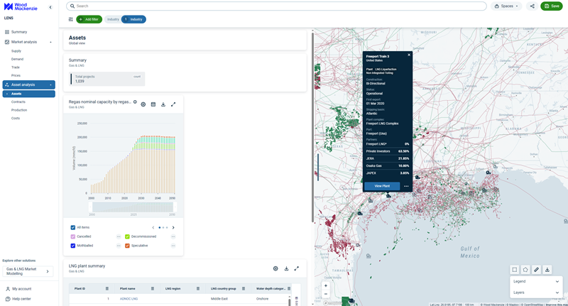 Cross-commodity framework - Actively developed with the addition of more high-value data, content, and functionality, as well as through the integration of other commodity data, so you can view Gas & LNG assets next to assets from other energy sectors such as renewables, hydrogen, and upstream.