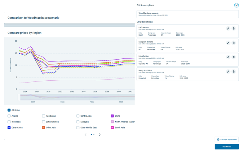 - Create alternative outlooks and compare your view with Wood Mackenzie's base case analysis.